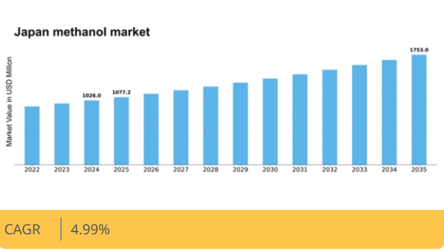 日本のメタノール市場は、エネルギーおよび化学セクターにおける需要増加を背景に、2025年から2035年にかけて年平均成長率(CAGR)4.99%で成長すると予測される。