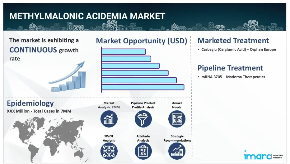 IMARC社の新報告書「メチルマロン酸血症市場規模、疫学、市場内医薬品売上高、開発中の治療法、および地域別展望 2025-2035年」において、メチルマロン酸血症市場が包括的に分析されております。メチルマロン酸血症(MMA)は、酵素であるメチルマロニルCoAムターゼの欠損、またはその補因子であるビタミンB12由来のアドエノシルコバラミンの異常によって引き起こされる、稀な遺伝性代謝疾患です。この酵素は、特定のアミノ酸や脂肪酸の分解において重要な役割を担っています。