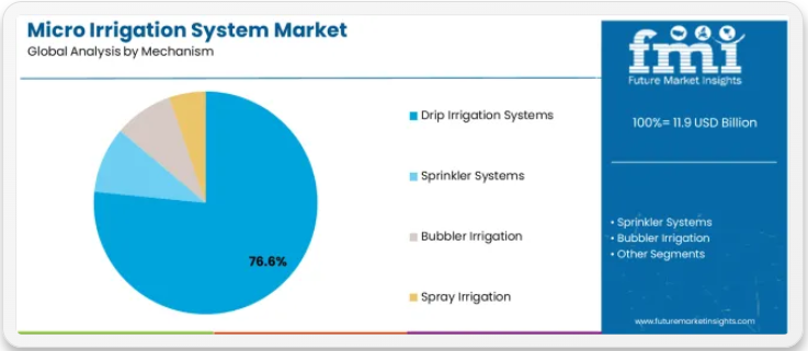 メカニズム別では点滴灌漑システムセグメントが圧倒的シェアを占める