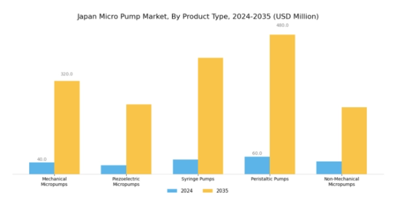 非機械式マイクロポンプは、技術進歩と流体移送における機械的接触最小化の推進により新たな選択肢として台頭しており、敏感な流体の完全性を重視する分野で需要が高まっている。自動化やデバイスの小型化トレンドに牽引されマイクロポンプ利用分野が成長を続ける中、各製品タイプにおいて性能と効率を向上させる革新が期待される。日本政府は先進製造技術の研究開発を積極的に支援しており、これが様々な産業におけるマイクロポンプの採用をさらに推進しています。