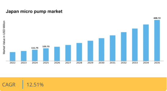 日本のマイクロポンプ市場は、医療技術の進歩、自動化の進展、精密な流体制御への需要を原動力として、2024年から2035年にかけて年平均成長率(CAGR)12.51%で成長すると予測されている。