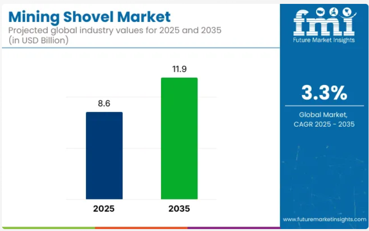 世界の鉱業用シャベル市場は、2025年に86億米ドルと評価され、2035年までに119億米ドルに達すると予測されており、3.3%の年平均成長率(CAGR)で拡大しています。