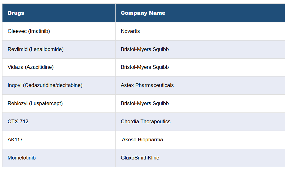 13. 骨髄異形成症候群 – 主な市販薬および開発中の薬剤の属性分析