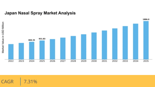 日本の鼻腔スプレー市場は、アレルギー治療と革新的な送達システムへの需要増加を背景に、2024年から2035年にかけて年平均成長率(CAGR)7.31%で成長すると予測される。
