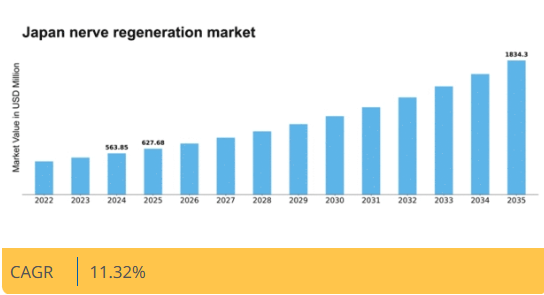 日本の神経再生市場は、技術進歩と患者需要の増加を背景に、2025年から2035年にかけて年平均成長率(CAGR)11.32%で成長が見込まれる。