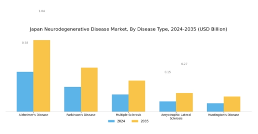 日本の高齢化は神経変性疾患市場の重要な推進要因である。人口構成が高齢層へ移行するにつれ、アルツハイマー病やパーキンソン病などの神経変性疾患の発症率は上昇すると予測される。現在、日本人口の約28%が65歳以上であり、この割合は2050年までに38%に増加すると見込まれている。この人口動態の傾向は、神経変性疾患市場において効果的な治療法とケアソリューションへの需要が高まっていることを示唆している。さらに、平均寿命が約84歳と延びていることも、これらの疾患の有病率をさらに悪化させ、高齢化社会に特化した革新的な治療法や医療サービスの需要を促進している。