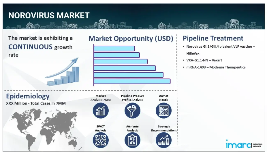 IMARC Groupの新報告書は、米国、EU4(ドイツ、スペイン、イタリア、フランス)、英国、日本におけるノロウイルス市場について包括的な分析を提供しております。これには、治療実践、市場流通中および開発中の薬剤、個別療法のシェア、主要7市場における市場動向、主要企業とその薬剤の市場実績などが含まれます。また、主要7市場における現在および将来の患者数についても記載されております。
