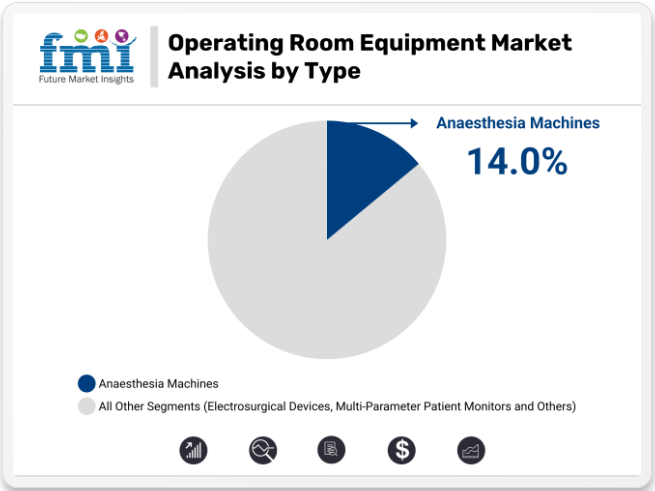 さらに、特に外来手術センターにおける手術件数の増加や低侵襲手術の選好度上昇が、高品質で効率的な麻酔装置の需要を後押ししている。安全かつ効率的な麻酔システムへの需要が高まり続ける中、麻酔装置は手術室機器市場において強固な地位を維持すると予想される。