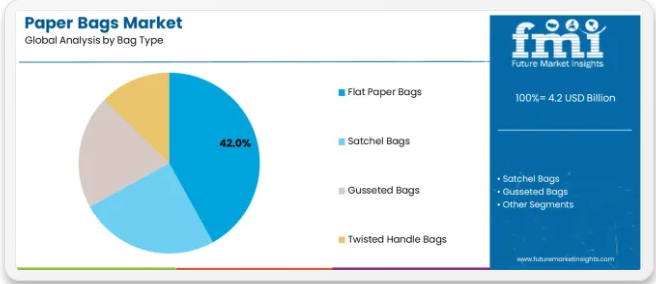 市場ポジション:平袋システムは、優れたコスト効率、印刷適応性、小売プレゼンテーション最適化といった多彩な包装機能により、多様な小売・外食環境で最適なブランド可視性を実現する点で優位性を発揮し、紙袋市場で42%のシェアを獲得している。