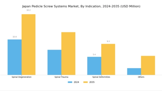 日本における脊椎疾患の発生率上昇は、椎弓根スクリューシステム市場にとって重要な推進要因である。椎間板変性症や脊柱管狭窄症などの疾患がより一般的になり、外科的介入が必要となっています。最近の統計によると、脊椎手術は年間約10%増加しており、効果的な治療法の必要性が高まっていることを示しています。人口の高齢化と生活習慣要因が脊椎の健康問題に寄与するにつれ、信頼性の高い椎弓根スクリューシステムへの需要は増加すると予想されます。この傾向は、脊椎疾患に苦しむ患者のニーズに対応するための革新的なソリューションの開発の重要性を強調しています。