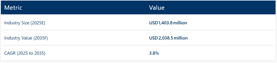 また2024年には、QED Environmental Systems社が流量精度±1%を実現する新型ペリスタルティックサンプリングポンプを発表。水質分析・環境モニタリング分野での使用を想定し、自動サンプリングネットワークへの統合を可能とする簡易校正機能と遠隔テレメトリー機能を装備している。指標値業界規模(2025年予想) 14億380万米ドル業界規模(2035年予測) 20億3850万米ドルCAGR(2025年~2035年) 3.8%
