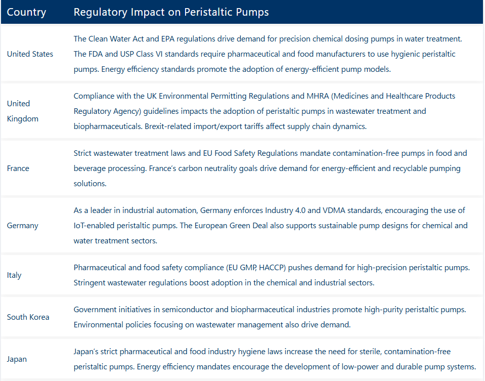 1年間の経営陣注目リスト優先度 即時対応スマートポンプ統合 AI駆動型自動化と予知保全機能の研究開発に投資。規制対応準備 製品設計を医薬品・水処理分野を中心に進化する業界規制に適合させる。サプライチェーン耐性 供給基盤の多様化と物流最適化により潜在的な混乱を軽減。新興産業への拡大 アジア太平洋・中南米地域におけるパートナーシップと流通チャネルを強化。