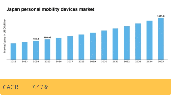 日本のパーソナルモビリティデバイス市場は、技術進歩と都市化の進展を背景に、2024年から2035年にかけて年平均成長率(CAGR)7.47%で拡大すると予測される。