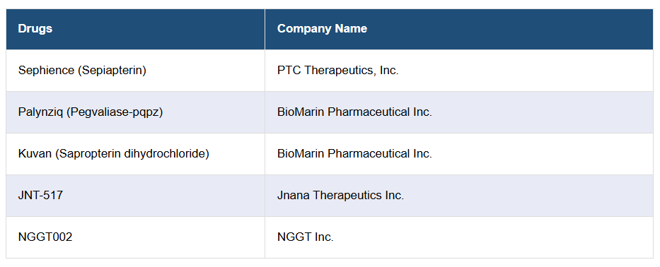 本レポートでは、現在市場流通中のフェニルケトン尿症治療薬および後期開発段階のパイプライン薬剤についても詳細な分析を提供します。