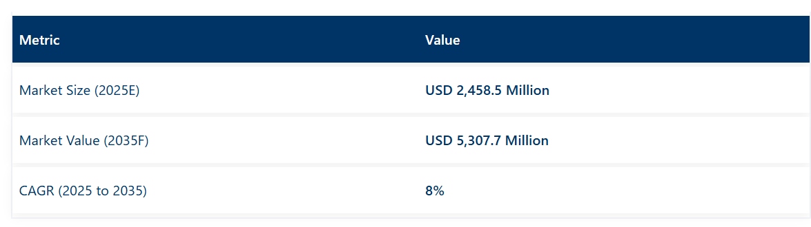 世界のポリアリールスルホン市場は、2025年に24億5,850万米ドルと推定され、2035年までに53億770万米ドルに拡大し、8.0%の年平均成長率(CAGR)を記録すると予測されています。市場成長は、規制産業における滅菌医療機器、ろ過システム、電気絶縁材向けの高性能熱可塑性プラスチックへの需要増加によって牽引されています。