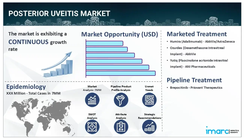 IMARC社の新報告書「後部ぶどう膜炎市場規模、疫学、市場内医薬品売上高、開発中の治療法、および地域別見通し 2025-2035年」において、後部ぶどう膜炎市場が包括的に分析されました。後部ぶどう膜炎は、脈絡膜、網膜、視神経からなる眼球後部で発生する、視力を脅かす炎症性疾患です。本疾患は多面的かつ異質な病態であり、トキソプラズマ症、サイトメガロウイルス、結核、梅毒などの感染性病因、あるいはサルコイドーシス、ベーチェット病、多発性硬化症などの非感染性自己免疫疾患によって引き起こされる可能性があります。