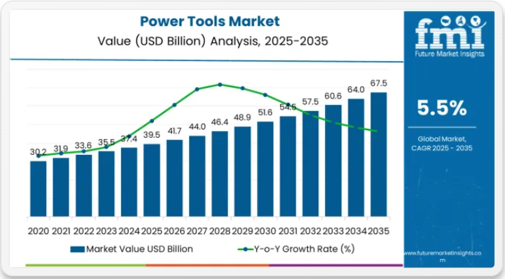 2025年から2030年の間に、電動工具市場は395億米ドルから524億米ドルへ拡大し、129億米ドルの価値増加が見込まれます。これは10年間の予測成長過程総額の45.6%に相当します。この発展段階は、インフラ開発プロジェクトの増加、コードレス電動工具の普及拡大、建設・製造業務における効率的な工具への需要増によって形作られる。機器メーカーは、バッテリー駆動工具への需要増と運用信頼性の向上に対応するため、生産能力を拡大している。