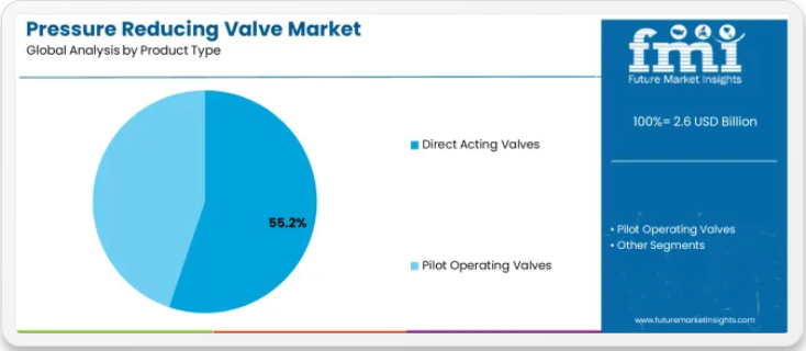 市場ポジション:直動式バルブシステムは、優れた調節精度、運用効率、流体管理最適化といった先進的な圧力制御機能により、多様な住宅・商業・産業環境において最適な圧力安定性を実現する施設ニーズに応え、減圧弁市場で55.2%のシェアを獲得し主導的地位を確立している。