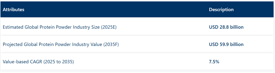 世界のプロテインパウダー市場は、2025年の288億米ドルから2035年までに599億米ドルへ成長し、年平均成長率(CAGR)7.5%を示すと予測されております。