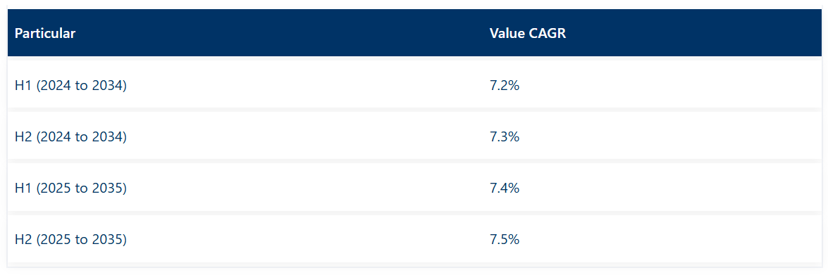 2025年から2035年までの10年間の前半(H1)において、本事業は7.4%のCAGRで成長し、後半(H2)ではさらに高い7.5%の成長率が見込まれます。その後、2025年度上半期から2035年度下半期にかけてのCAGRは、消費者需要の拡大とプロテインパウダーの形態多様化を反映しています。事業レベルでは、上半期に20ベーシスポイント(BPS)、下半期に10ベーシスポイントの成長が見込まれます。