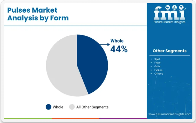 インドでは、全粒豆類は日常の食事や政府の栄養計画に不可欠であり、国内需要を押し上げています。北米の健康志向消費者も、スープや即席食品に全粒豆を取り入れている。最小限の加工により食物繊維・タンパク質・微量栄養素の保持が向上し、クリーンラベル食品のトレンドに沿っている。