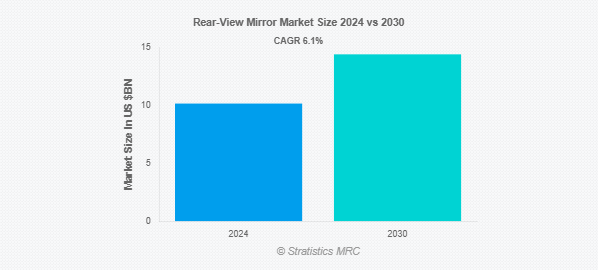 Stratistics MRCによると、リアビューミラーの世界市場は2024年に101.5億ドルを占め、予測期間中の年平均成長率は6.1%で、2030年には144億ドルに達する見込みです。バックミラーは、自動車のダッシュボードやフロントガラスに取り付けられ、ドライバーの後方視界を確保する反射鏡です。交通状況を明確に把握し、車線変更、後退、他の車への注視を支援することで、安全性を向上させます。バックミラーの中には、内蔵カメラ、デジタル表示、ヘッドライトの眩しさを軽減する自動調光など、高度な機能を備えたものもあります。死角を埋めることで、社外品のサイドミラーはバックミラーを強化します。バックミラーは、空間認識能力を高め、衝突のリスクを低減するため、運転に必要なものです。