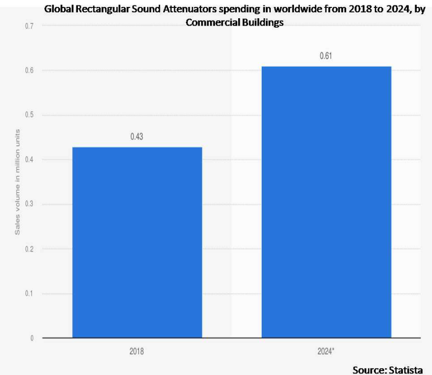 クロストーク減衰器セグメントが最大のシェアを占めると推定されています。クロストーク減衰器は、建物内やHVAC(暖房・換気・空調)システム内の異なる区域や部屋間の騒音伝達を軽減するために設計された特殊装置である。クロストーク減衰器は、二つの空間間の音伝達経路を遮断し、騒音伝達の影響を低減するよう設計されている。通常、一連のバッフル、吸音材、その他の音響要素で構成され、音波を乱し吸収する配置となっている。
