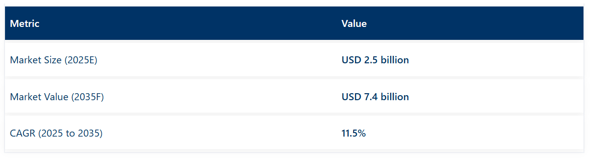 世界の再生可能メタノール市場は、2025年の25億米ドルから2035年までに74億米ドルへ成長すると予測されており、予測期間における年平均成長率(CAGR)は11.5%となります。