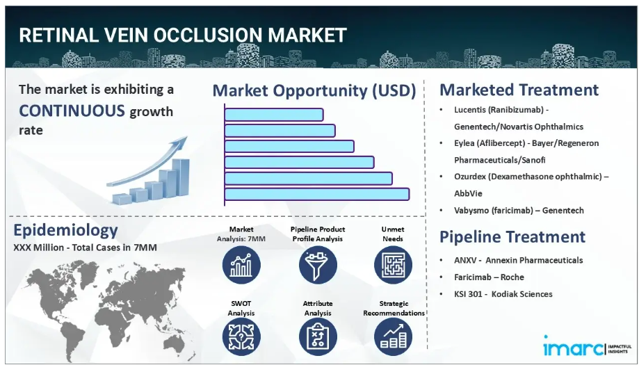IMARC Groupの新報告書は、米国、EU4(ドイツ、スペイン、イタリア、フランス)、英国、日本における網膜静脈閉塞症市場について包括的な分析を提供しております。これには、治療実践、市場流通中および開発中の薬剤、個別療法のシェア、主要7市場における市場動向、主要企業とその薬剤の市場実績などが含まれます。また、主要7市場における現在および将来の患者数についても記載されております。本報告書によれば、米国は網膜静脈閉塞症の患者数が最も多く、治療市場としても最大規模を占めています。さらに、現在の治療実践/アルゴリズム、市場推進要因、課題、機会、償還シナリオ、未充足医療ニーズなども本報告書に記載されています。本報告書は、メーカー、投資家、ビジネス戦略家、研究者、コンサルタント、および網膜静脈閉塞症市場に関与している、あるいは参入を計画している全ての方にとって必読の資料です。