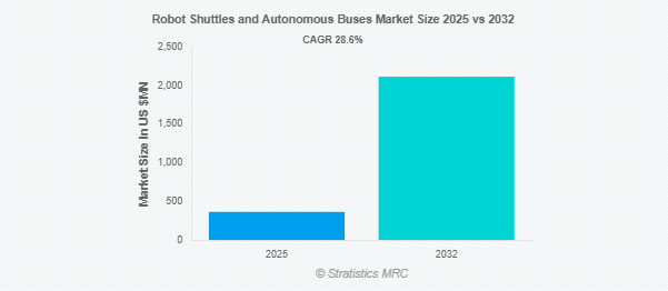 Stratistics MRCによると、ロボットシャトルと自律走行バスの世界市場は、2025年に3億6,388万ドルを占め、予測期間中の年平均成長率は28.6%で、2032年には2億1,165万ドルに達する見込みです。ロボットシャトルと自律走行バスは、人間の運転手なしで運行するように設計された自動運転の公共交通車両です。センサー、AI、高度なナビゲーションシステムを備え、効率的で安全、かつ環境に優しいモビリティソリューションを提供します。通常、電気駆動のこれらの車両は、都市部、キャンパス、閉鎖環境で使用され、ファーストマイルとラストマイルの接続を提供します。世界中のスマートシティや持続可能な交通イニシアチブの重要なイノベーションを象徴しています。