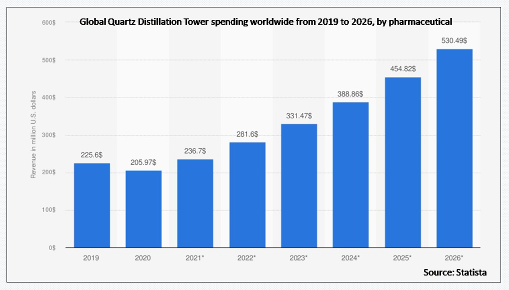 ロックダウン、輸送禁止、工場閉鎖は、石英蒸留塔の製造に必要な原材料・部品のサプライチェーンに混乱をもたらした。その結果、生産が遅延し、経費が増加した。石英蒸留塔の需要は、この流行の影響で変動した。生産量の変化は、化学処理、医薬品、半導体製造など、これらの塔に大きく依存する産業における需要変動につながった。