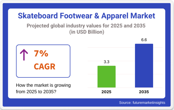 スケートボード用フットウェア&アパレルの世界市場分析 – 規模、シェア、2025年~2035年までの予測見通し