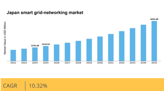 日本のスマートグリッド・ネットワーキング市場は、技術進歩と規制支援を原動力として、2024年から2035年にかけて10.32%のCAGRで成長する見込みである。