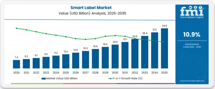 スマートラベル市場は世界的に急成長しており、中国が2035年まで年平均成長率(CAGR)13.2%で首位を走っています。これは大規模な電子商取引インフラ開発、政府支援によるRFID導入イニシアチブ、小売自動化とスマート物流能力への多額投資が牽引しています。インドは12.8%で続き、急速な電子商取引の成長、組織化された小売業の浸透拡大、在庫管理技術への認識向上に支えられている。