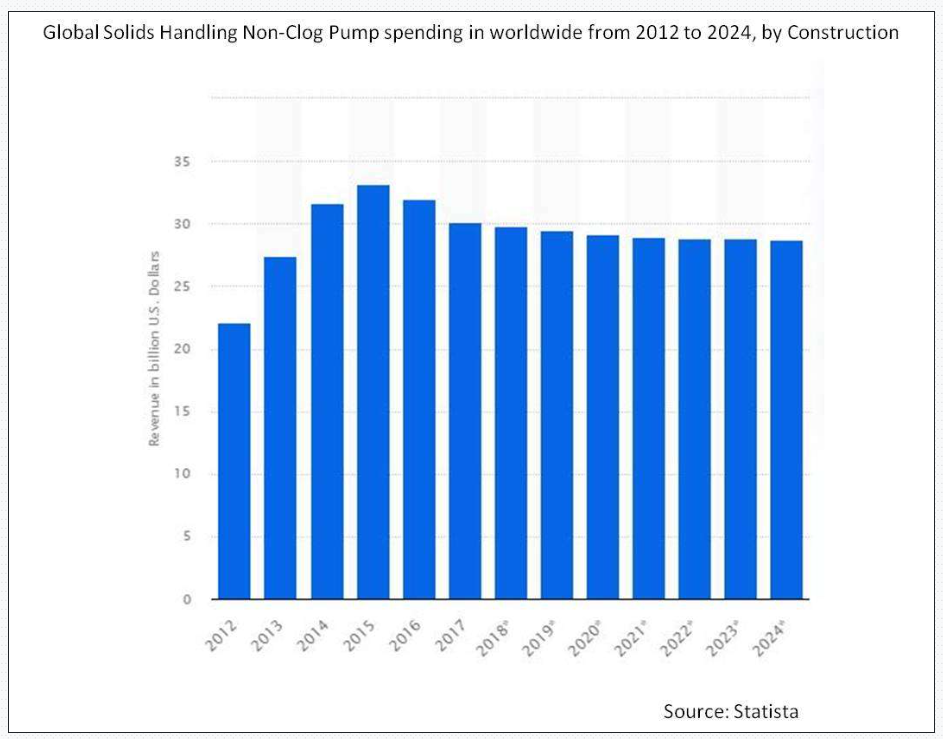 ストラティスティクスMRCによると、世界の固形物処理用ノンクロッグポンプ市場は予測期間中に年平均成長率(CAGR)5.7%で成長している。固形物処理用ノンクロッグポンプは、固体粒子、破片、またはスラリーを含む流体を、詰まりやポンプ性能の低下なく処理するために設計された特殊ポンプである。ノンクロッグ設計により詰まりや中断を防ぎ、固体を含む流体を処理する場合でも安定した流量を維持する。
