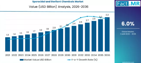 - 胞子殺菌剤および滅菌剤市場の予測市場規模(2036年): 31億9,000万米ドル