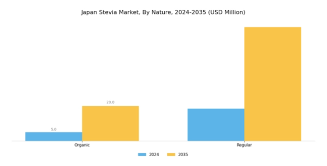 このセグメントの成長は、過剰な砂糖摂取に伴う健康リスクへの認識の高まりと、低カロリー製品の需要増加によって推進されている。市場動向は、より健康的なライフスタイルへの世界的な動きと一致し、天然甘味料への移行を示している。日本の食品規制も有機ステビアと通常ステビア双方の成長を促進し、日本ステビア市場におけるイノベーションと製品開発を促す競争環境を形成している。