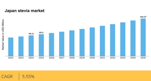 日本のステビア市場は、健康意識の高まりと天然甘味料への需要拡大を背景に、2024年から2035年にかけて年平均成長率(CAGR)5.55%で成長すると予測される。