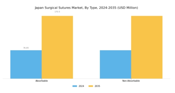 さらに、進化する患者安全基準と規制は、より高品質な外科製品の提供を求め、メーカーに縫合糸の性能向上と革新を促している。日本の外科用縫合糸市場では、軽くて適応性の高い縫合糸が重要な役割を果たす低侵襲手術への傾向も示されている。両タイプは異なる外科的ニーズに対応するため、効果的で安全かつ信頼性の高い外科的結果を提供する上で同等に重要な役割を果たしている。
