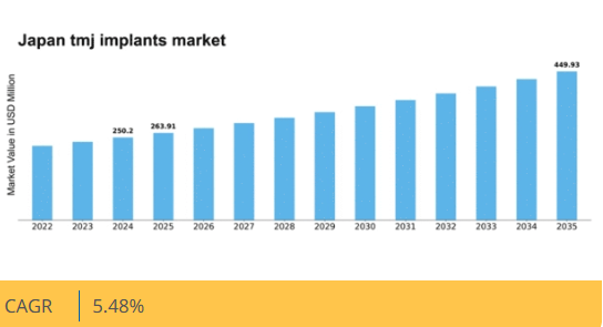 日本のTMJインプラント市場は、技術進歩・患者意識の高まり・医療費増加を背景に、2024年から2035年にかけて年平均成長率(CAGR)5.48%で拡大すると予測される。