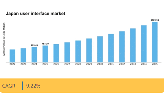 日本のユーザーインターフェースサービス市場は、技術進歩とユーザー中心設計への需要増加を背景に、2024年から2035年にかけて年平均成長率(CAGR)9.22%で成長すると予測される。