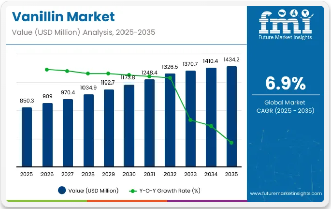 2025年から2030年にかけて、バニリン市場は8億5,030万米ドルから11億920万米ドルへ拡大し、2億5,890万米ドルの価値増加が見込まれる。これは10年間の予測成長過程総量の44.3%を占める。この成長過程は、風味添加の利点に関する消費者意識の高まり、天然由来・クリーンラベル製剤への需要増加、新興市場におけるプレミアム食品・飲料製品の浸透拡大によって形作られる。食品・飲料メーカーは、多機能性風味ソリューションへの需要増に対応するため、バニリン製品ポートフォリオを拡充している。