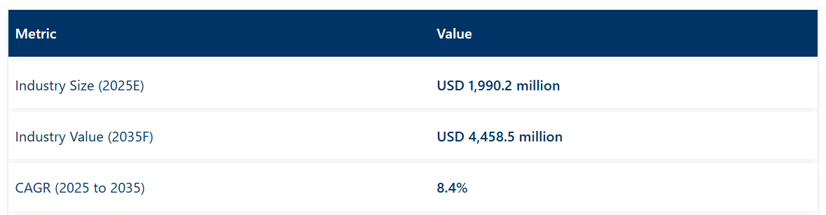 世界の獣医用ポイントオブケア市場は、2025年に19億9,020万米ドルと推定され、2035年までに44億5,850万米ドルに達すると予測されています。予測期間における年平均成長率(CAGR)は8.4%となる見込みです。