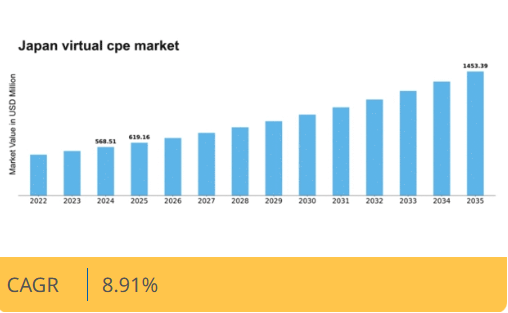 日本の仮想CPE市場は、柔軟なネットワークソリューションとコスト効率への需要増加を背景に、2025年から2035年にかけて年平均成長率(CAGR)8.91%で成長すると予測されています。