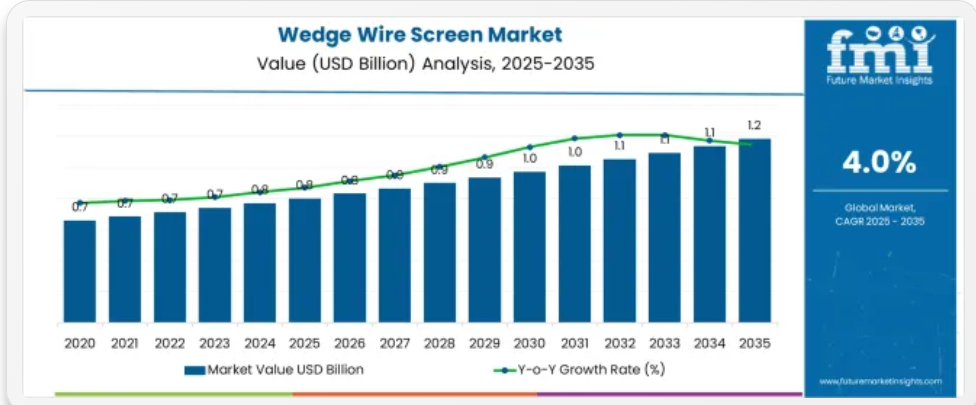Future Market Insightsが最近発表した報告書によると、ウェッジワイヤースクリーンの市場は、予測期間中に年率4.1%の成長を遂げ、USD 7億ドルを超えると予測されています。