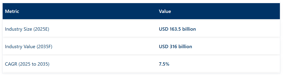 世界の女性向け健康サプリメント市場は、2025年に1,635億米ドルと推定され、2035年までに3,160億米ドルに達すると予測されています。予測期間における年平均成長率(CAGR)は7.5%となる見込みです。
