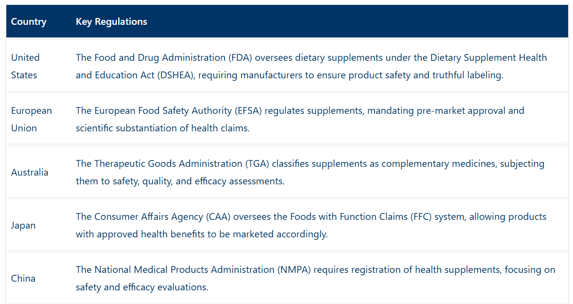 - 政府規制 – サプリメントの安全性および表示慣行を強化する取り組み。