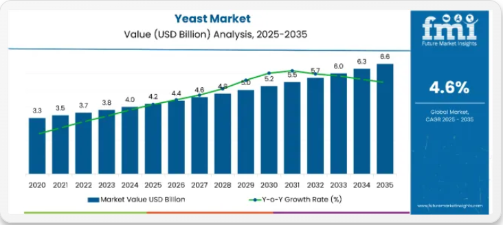 酵母市場規模とシェア予測見通し 2025年から2035年