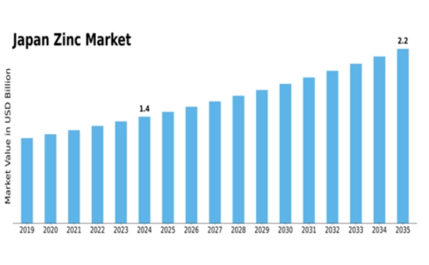 日本の亜鉛市場は、2024年の13億5000万米ドルから2035年までに22億1000万米ドルへ成長すると予測されており、堅調な成長軌道を反映している。