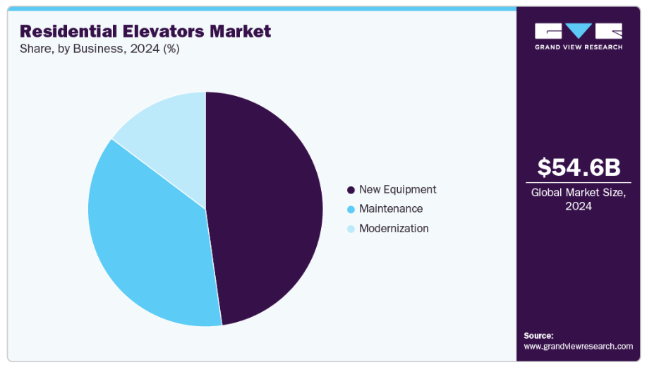 新規設備セグメントは家庭用エレベーター市場を主導し、2024年には47.7%のシェアを占めました。これは開発業者や住宅所有者が近代的でカスタマイズされた設置に投資しているためです。多層住宅や高級住宅の建設増加が需要を強く牽引しています。先進技術と設計の柔軟性が、新規エレベーターをエンドユーザーにとって魅力的にしています。加えて、有利な資金調達オプションやアクセシビリティ向上のための政府インセンティブが、新規設備の導入を促進しています。